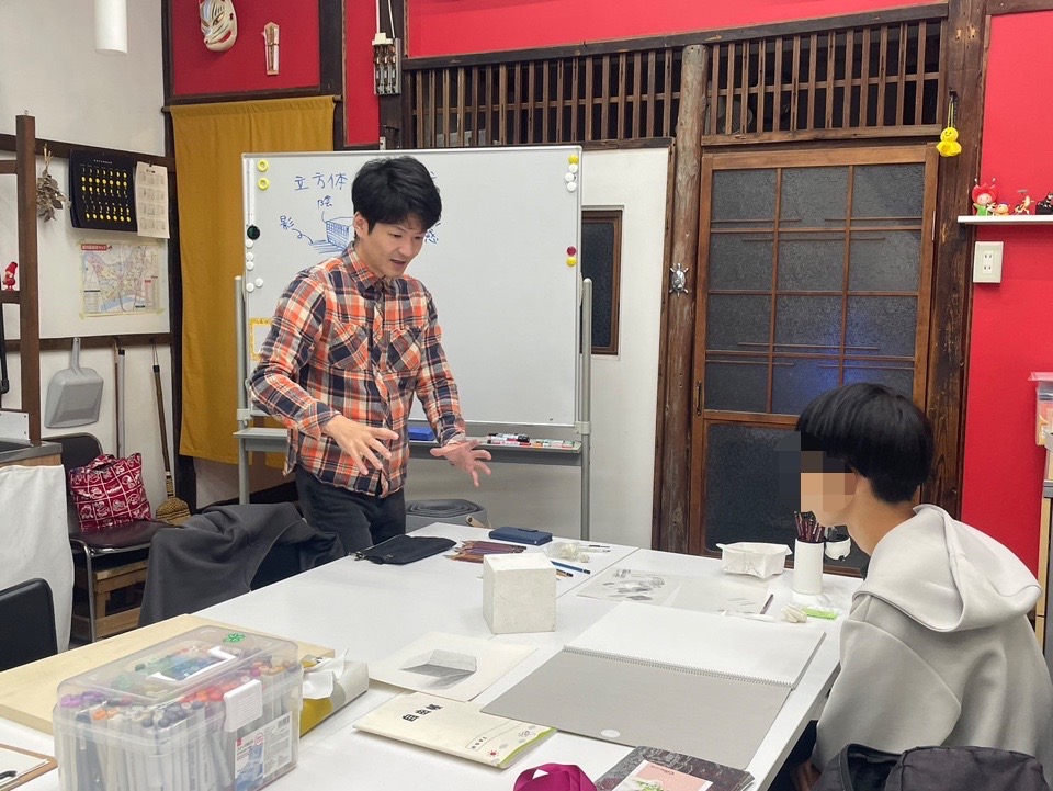 11月に新入生が入り、ただいま絶賛マンツーマン指導中の小山大地先生のこどもデッサン教室。 鉛筆の削り方からスタートし、立方体・直方体のデッサンに挑戦しました。 中学2年生のIくんは、とても理解が早く、どんどん知識を吸収。わずか2か月で、ここまで... -