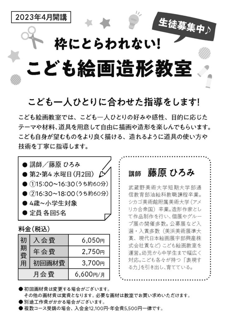 こども絵画造形教室、4月より開講します!